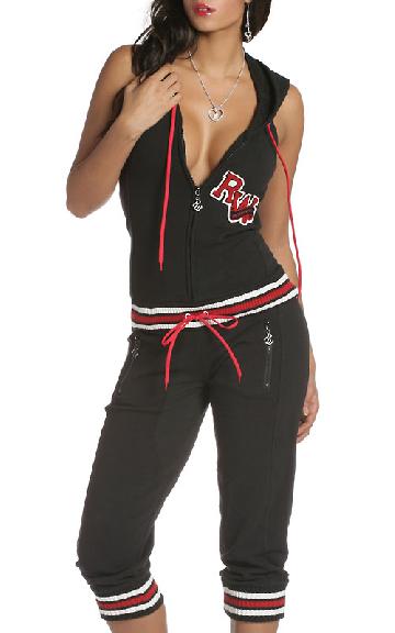 Prepare to turn heads when going out this season in this sporty French terry backless hooded jumpsuit. Featuring zip front closure, striped sweater ribbed insets along waistband and hems, drawstring closure, terry cloth and felt RW patch at left chest, zip slash pockets at sides of hips, heavy stitched RW at center of hood and trademark R at upper backside. Perfect to pair with sexy boots and be the center of attention