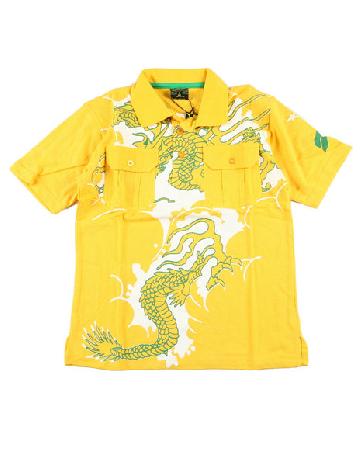 Screen print design of clouds and dragon on chest