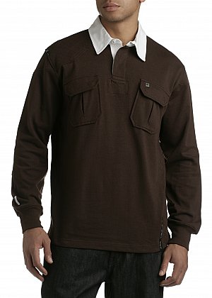 Kick it with the Roc. Long sleeve top features a contrasting point collar that leads to a concealed button placket. Details include chest pockets with double snap closure, ribbed cuffs and a vented hem. Stitch detailing at right shoulder as well as at side seams feature signature logo branding.
